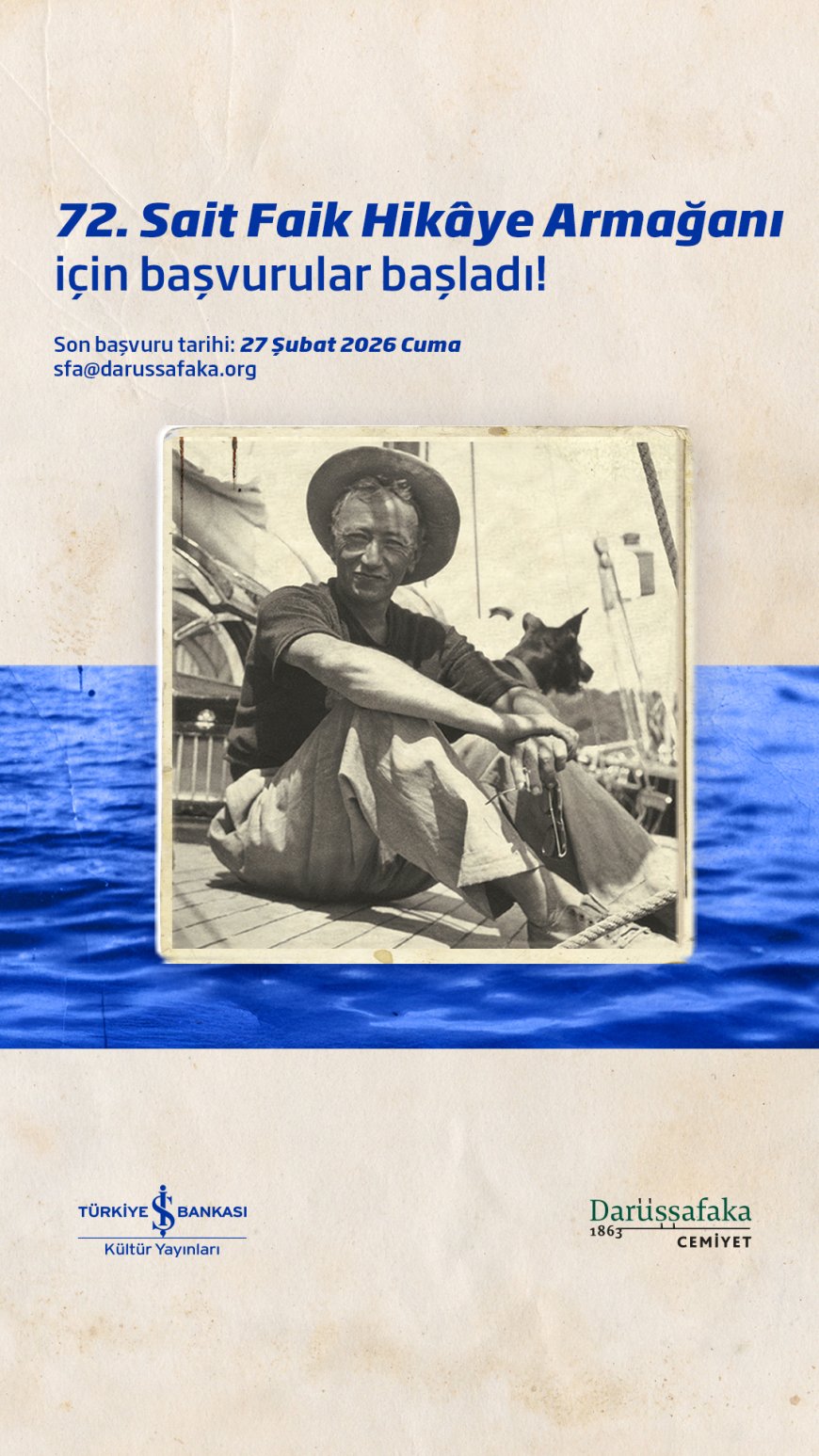 Usta yazar Sait Faik Abasıyanık’ın anısını yaşatmak amacıyla her yıl bir öykü yazarına verilen Sait Faik Hikâye Armağanı’nın 72’ncisi için başvuru süreci başladı. Darüşşafaka Cemiyeti, Türkiye İş Bankası ve İş Bankası Kültür Yayınları iş birliğiyle düzenlenen ödüle, daha önce Armağan’ı kazanmamış yazarların 2025 yılında yayımlanmış ve herhangi bir ödül almamış öykü kitaplarıyla başvurması gerekiyor.